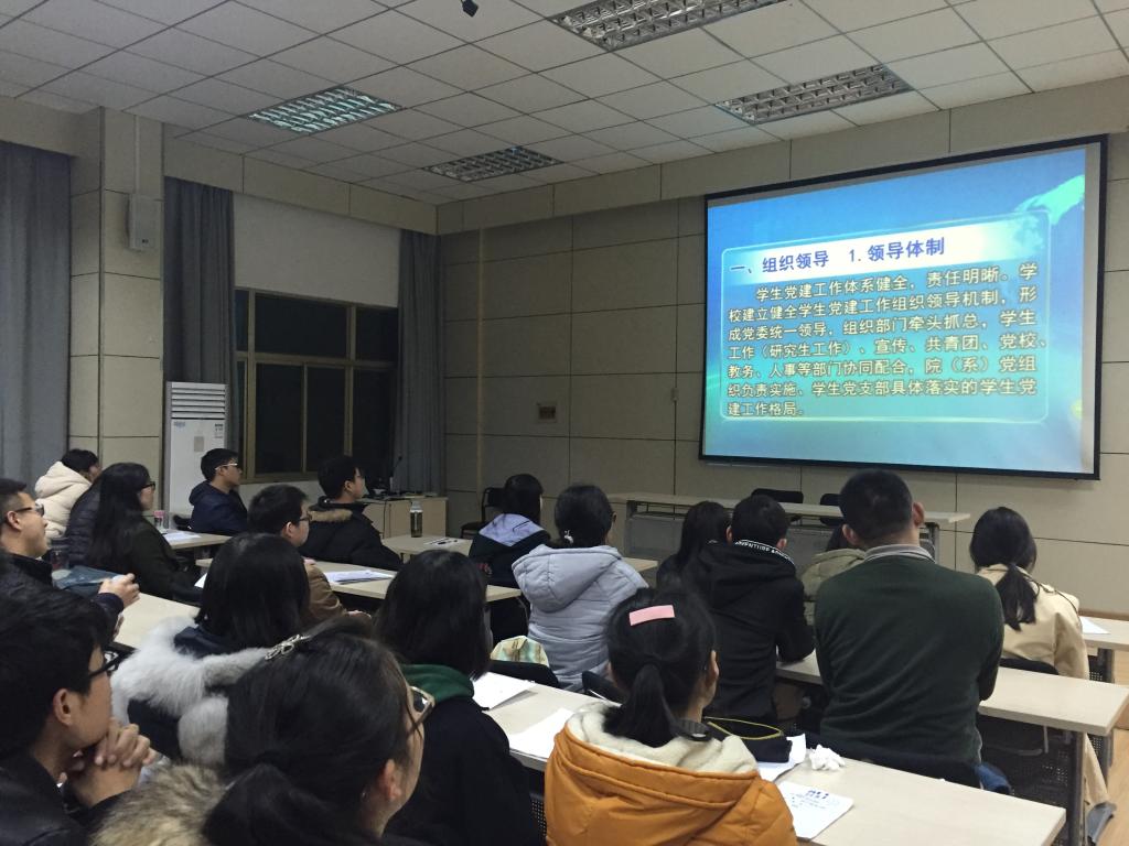 3月17日下午六点,太阳成集团tyc151cc组织部干事组织太阳成集团tyc151cc第三十八期入党积极分子共同学习了中共教育部印发的《普通高等学校学生党建工作标准》。