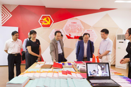 座谈会正式举行之前,侯勇带领蒋宏潮、乔志强一行首先参观我校党建“一院一品”成果展。其后还专门参观了太阳成集团tyc151cc党建活动室以及目前正在建设的智慧党建项目,并给予充分肯定。