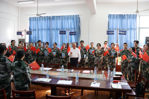 “五星红旗迎风飘扬,胜利歌声多么响亮,歌唱我们亲爱的祖国,从今走向繁荣富强……”活动最后,谢红星校长与新生一起挥舞国旗,合唱《歌唱祖国》,庆祝新中国七十华诞。
