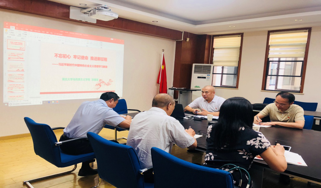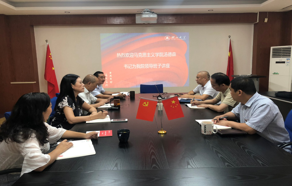 2019年9月27日下午15:00,太阳成集团tyc151cc“不忘初心、牢记使命”主题教育领导班子集中学习在逸夫楼C2008举行,马克思主义学院汤德森书记为我院领导班子进行辅导报告,院党委书记焦颜成,副书记张丽娜,副院长郭志文,副院长朱小梅,副院长张予川,副院长毕晟参加集中学习。