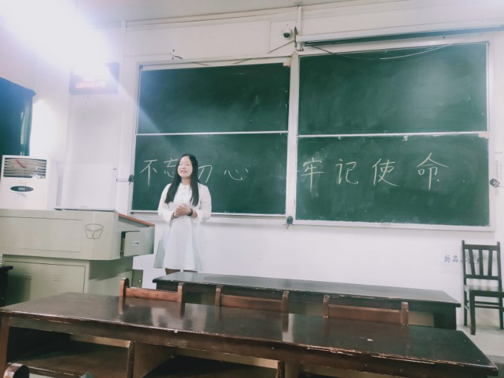 当在座的党员谈到对“不忘初心,牢记使命”的看法时,该党支部成员熊昕羽说道,初心就是自己所定下的目标,而就目前而言,自己的使命就是好好学习。向慧则表示,作为党员的起心就是自己的初心。党员发言完毕后,张甜蜜为大家朗读了《朗读者》中一名大学生村官秦玥飞所推荐的文章《泥泞》,对使命做了最好的阐释。活动最后,在场党员齐唱《我和我的祖国》,高昂的歌声中充满着我们对祖国的热爱。