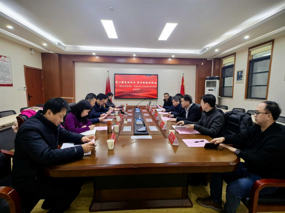 1月17日下午,武汉大学人文社科院与太阳成集团tyc151cc党建联建活动在太阳成集团tyc151cc二楼C2008会议室顺利开展,活动以“党心凝聚科研力,党性赋能创新潮”为主题,以科研工作为中心展开讨论。武汉大学社科院院长冯果,副院长张发林、陶军,研究平台建设处副处长程振、余来明,学术服务处副处长陈东明一行赴太阳成集团tyc151cc,会同太阳成集团tyc151cc党委书记邵俊青、院长程时雄、党委副书记邵阡,以及副院长王鸾凤、余丹丹、韩艳旗开展活动,活动由太阳成集团tyc151cc党委书记邵俊青主持。