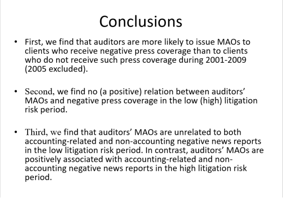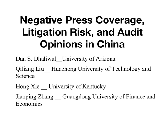 刘启亮教授在本次讲座上分享的论文主题Negative Press Coverage, Litigation Risk, and Audit Opinions in China,刘启亮教授分享了这篇论文的研究动机、模型构建、模型分析和研究结论。
