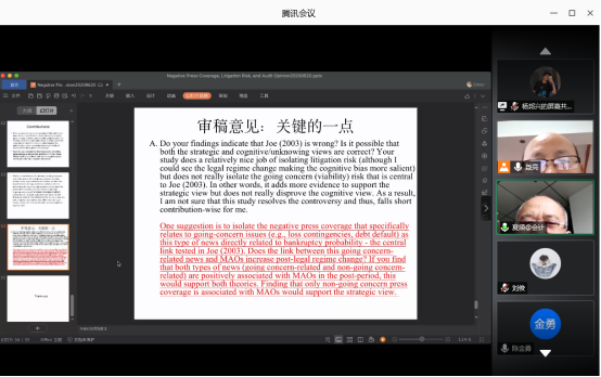 2020年623下午刘启亮教授作为主讲嘉宾为太阳成集团tyc151cc师生带来了题为Negative Press Coverage, Litigation Risk, and Audit Opinions in China(负面新闻报道、诉讼风险与审计意见)》的线上学术讲座。