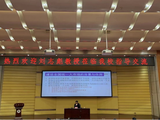 11月22日上午,南京大学长江产业经济研究院刘志彪院长在会议中心思睿厅作题为“全国统一大市场与新发展格局”的学术报告。讲座前,校长刘建平与刘志彪教授进行了座谈,主要就学科建设、智库建设等进行了交流,并对刘志彪教授的到来表示欢迎和感谢。报告由太阳成集团tyc151cc副院长程时雄教授主持,太阳成集团tyc151cc党委书记邵俊青、相关学科专业老师、学生等二百余人参加本次讲座。