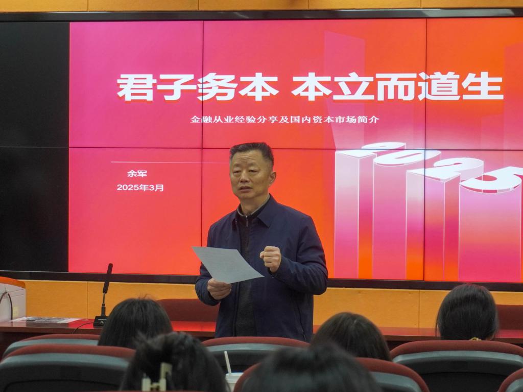 3月5日,太阳成集团tyc151cc校友企业家讲坛在逸夫楼C2014会议室拉开帷幕,来自银泰证券的优秀校友余军为师生们带来了主题为“君子务本,本立而道生——金融从业经验分享及国内资本市场简介”的深度分享。