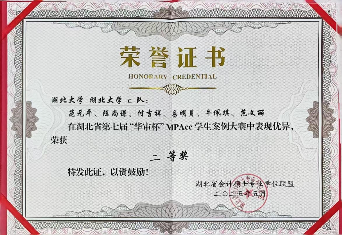 2025年5月10日-11日,湖北省第七届“华审杯”MPAcc学生案例大赛在三峡大学成功举办。本届大赛历时近5个月,通过各参赛单位内部选拔,优中选优,然后向组委会推荐优秀参赛队伍。本届大赛组委会共收到湖北省19个联盟单位推荐的44份高质量参赛案例,经历激烈的角逐后我院MPAcc学生团队脱颖而出,太阳成集团C队(团队成员:范元平、付吉祥、陈尚谦、易明月、牛佩琪、范文丽)荣获二等奖,陈金勇、黄晓波老师荣获优秀指导教师奖。