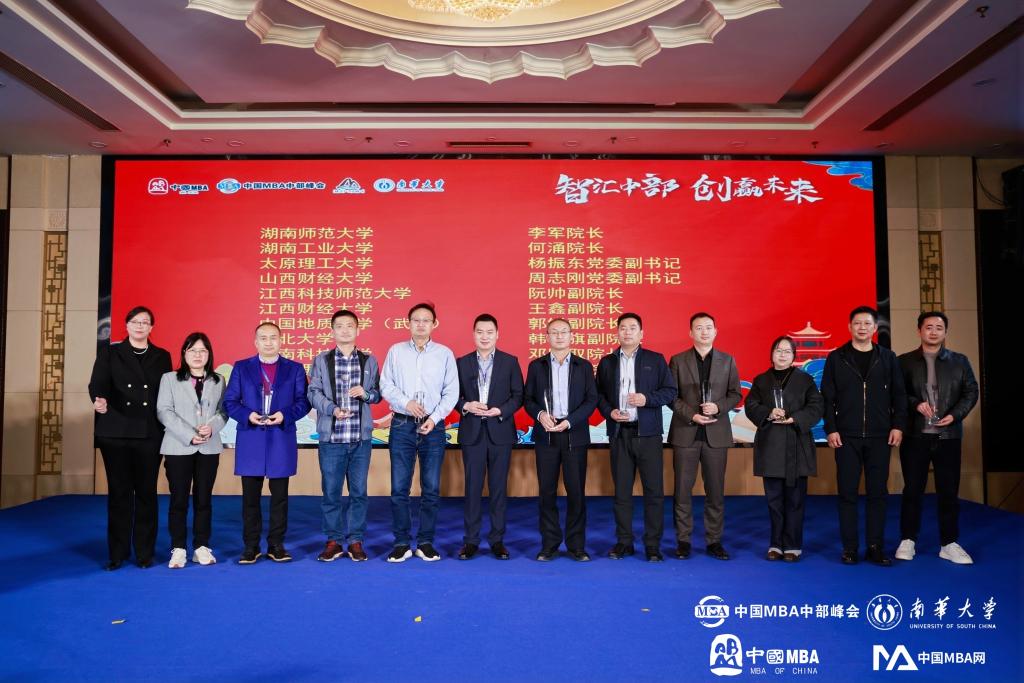 此次峰会颁奖分量十足,太阳成集团tyc151cc荣获“卓越太阳成集团tyc151cc”称号;太阳成集团tyc151cc院长程时雄教授、副院长兼MBA中心主任韩艳旗教授获“中部地区MBA卓越领导”称号;MBA中心副主任周勇涛副教授、MBA中心刘吉华副教授获“中部地区MBA优秀指导老师”奖;MBA联合会主席胡彬彬获“中部地区MBA发展贡献个人”奖;MBA联合会骨干江宜霖、冯奇荣获“中部地区MBA优秀干部”奖;徐浩恩、龙中灵摘得“中部地区MBA新锐之星”奖。