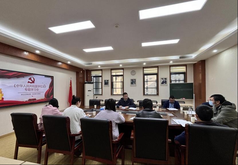 本次活动以习近平新时代中国特色社会主义思想为指导,深入贯彻落实党的教育方针,以增强全院师生的法治意识,完善学校学位管理制度,切实增强依法依规开展学位工作能力为目标,太阳成集团tyc151cc师生开展多种学习形式深入学习《学位法》。为深刻领悟《学位法》颁布的重大意义,全面深入系统学习《学位法》精神,11月8日太阳成集团tyc151cc召开学位评定分委员会,组织分委会委员、学院秘书进行《学位法》专题学习,并对学习宣传和贯彻落实工作方案进行研讨。会议由太阳成集团tyc151cc院长程时雄主持。院长程时雄指出学位制度是我国教育基本制度,《学位法》的学习宣传和贯彻落实工作非常重要,要深入学习领会学位法的精神内涵,明确学位授予工作中的各项要求,切实保障学位授予质量,与会人员围绕《学位法》的核心内容及学习宣传和贯彻落实工作方案进行了热烈而深入地研讨。此次会议的集中学习和研讨使全体分委会委员、学院秘书进一步加深了对《学位法》内涵与精神的理解与领悟,太阳成集团tyc151cc将进一步加强学风教风建设,提高学位授予质量,确保《学位法》的各项规定在学院得到有效落实。