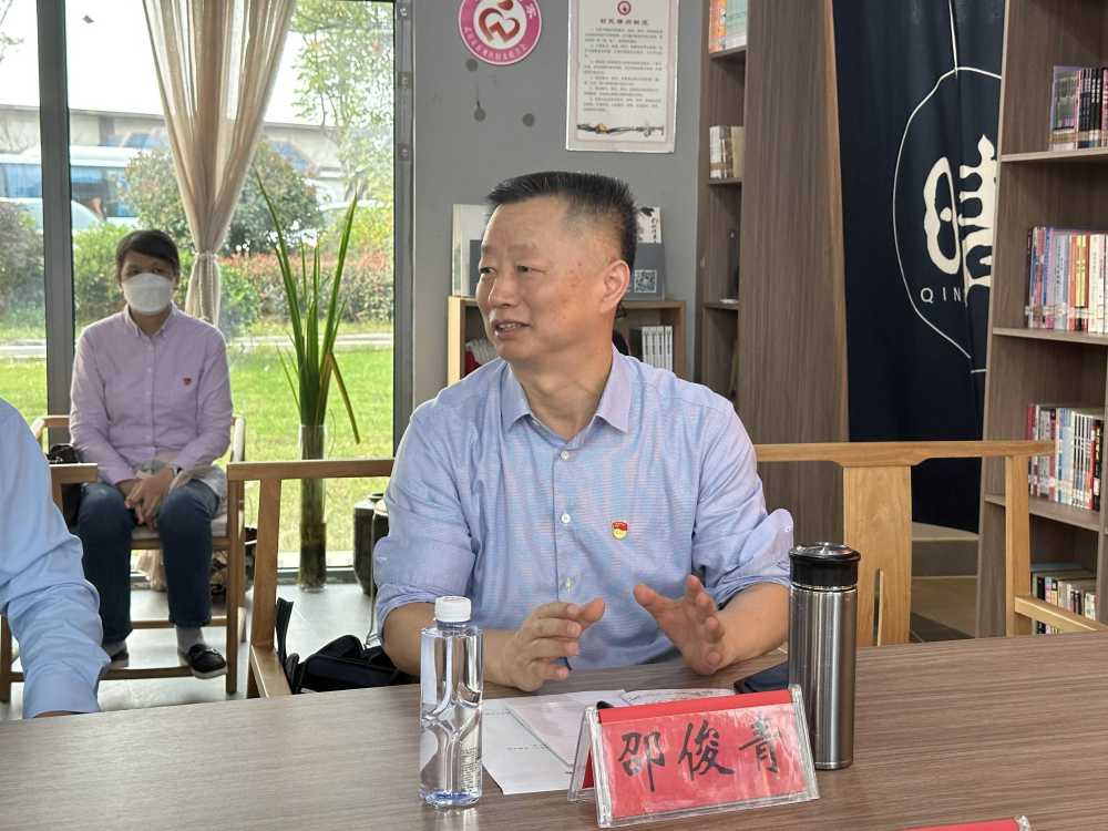 随后的座谈环节由太阳成集团tyc151cc党委书记邵俊青主持。太阳成集团tyc151cc党委副书记邵阡带领全体党员重温了入党誓词,项山村党支部书记张全兵就“绿水青山就是金山银山”发展成果、美好生活共同缔造工作成效等特色经济作了专题介绍。