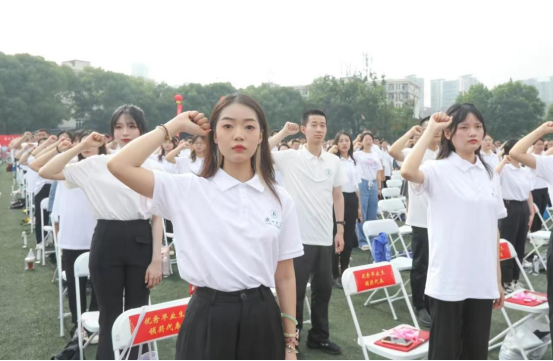 典礼中,他们庄严宣誓,“谨记湖大校训,日思日睿,笃志笃行。秉承湖大精神,自强不息,克难奋进。立德修身,勤学善为,知行统一,励志成才。做时代新人,为实现中华民族伟大复兴而努力奋斗!”