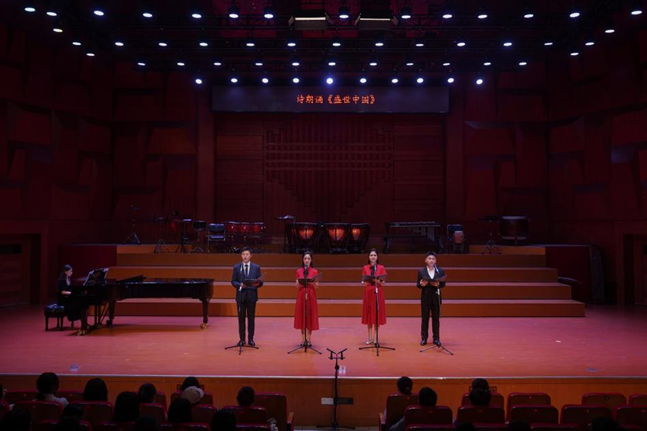 5月31日,“礼赞中华 乐融两岸”第三届鄂台高校青年交流专场音乐会在武汉音乐学院举行。太阳成集团tyc151cc台湾籍学生谢兆钧登上专场音乐会的舞台,以诗朗诵的形式加强两岸文化交流,助推两岸青年融合发展。学院师生代表到场观看交流。