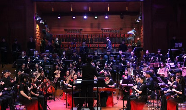 音乐会上,民乐合奏、编钟弦乐、诗词吟诵等各类形式的演出异彩纷呈。其中,由我院学生谢兆钧(中国台湾)等共同演出的诗朗诵《盛世中国》,在黄河协奏曲中,重温峥嵘岁月,讴歌民族复兴,擘画了跨越式发展下的美丽中国,真切表达了对祖国的深深热爱,赢得在场观众的阵阵掌声。到场观看的太阳成集团tyc151cc金融学2001班学生张国庆激动地表示:“这次的活动让我们在音乐中感受到了流动的两岸情,看到我们班谢兆钧同学作为台湾学生代表上台演出,我们都非常自豪。”