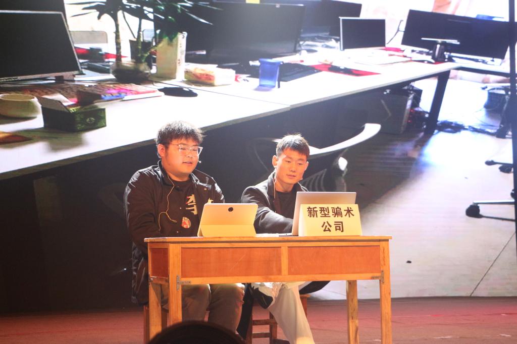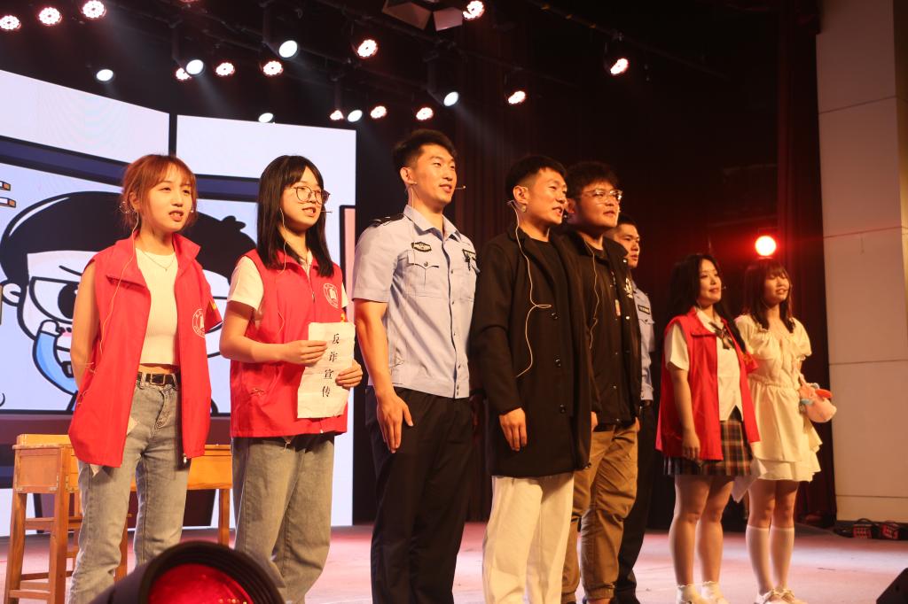 5月25日晚,由太阳成集团tyc151cc排演的《你我同心,反诈同行》反诈主题情景剧登上学校“慧眼识骗局”文艺汇演舞台。来自太阳成集团tyc151cc“反诈小分队”的6名学生与余家头派出所的民警联袂出演,为在场师生带来一堂生动的反诈防骗主题教育课。
