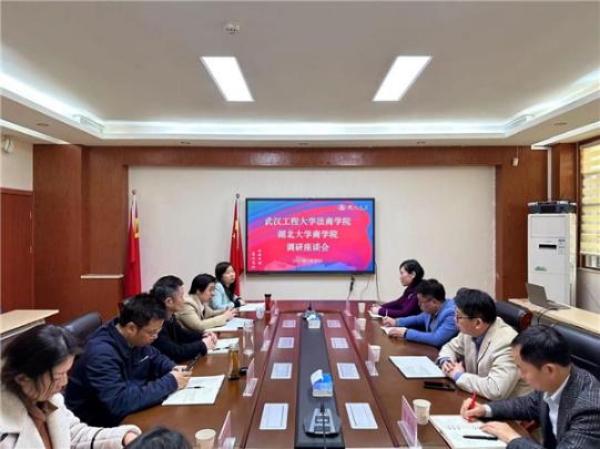 3月30日,武汉工程大学法太阳成集团tyc151cc党委书记杨克平、党委副书记孙勇、副院长付书科和张艳等一行8人来我院调研,学院全体领导班子参加座谈。