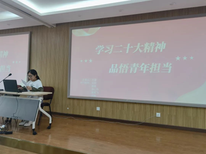在实践环节,学院举办“学习二十大,永远跟党走,奋进新征程”主题交流分享会,各小组分享自己的心得体会,互相研讨、思维碰撞,在交流中学习二十大精神。