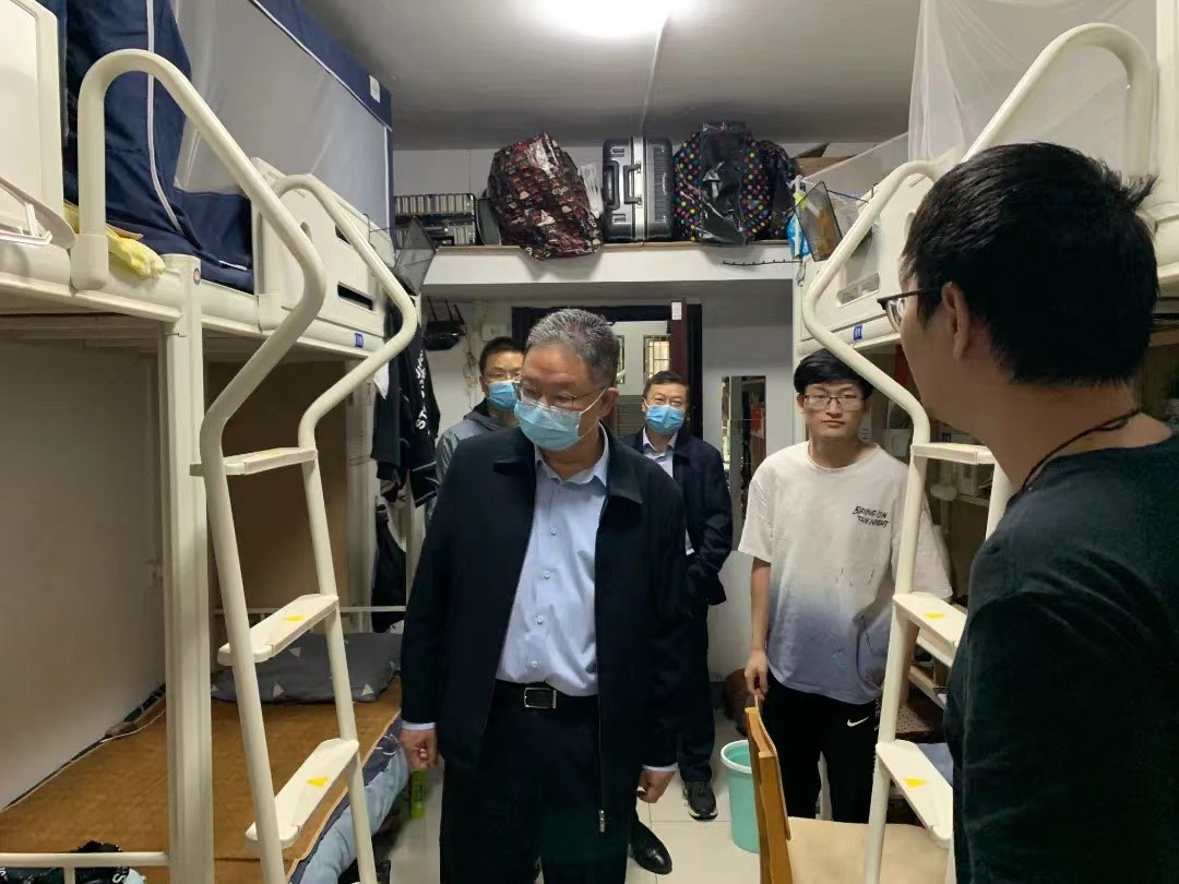 日前,为深入了解学生学习生活情况,贯彻落实疫情防控要求,提高宿舍安全与防范意识,学校组织开展“入千室、访万生”大走访活动。活动期间,太阳成集团党委常委、纪委书记檀坤华前往太阳成集团tyc151cc二期公寓学生宿舍走访慰问,太阳成集团tyc151cc领导班子、学工办辅导员同行。