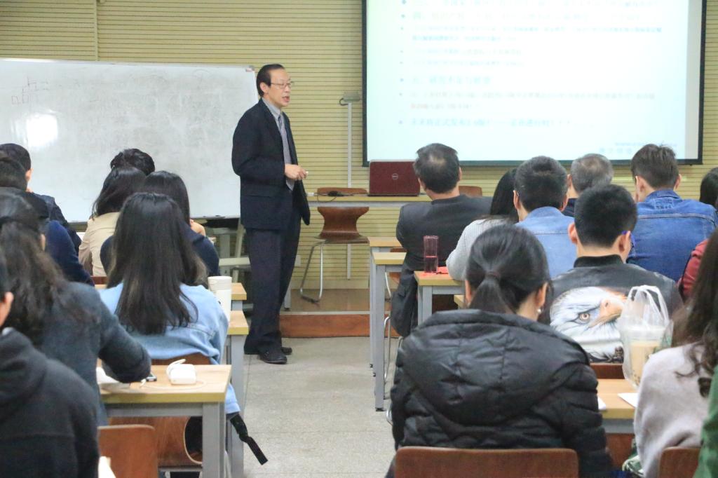 汤湘希教授是中南财经政法大学会计学院教授、博士生导师,也是中南财大中国经济与会计监管研究中心研究员及知识产权研究中心研究员,在《管理世界》等期刊发表文章80余篇,已出版独撰专著4部,合著8部,主编、参编教材10余部。讲座中,教授在引述实例时以“老汤”自称,其诙谐幽默、深入浅出的讲解风格很好地带动了在场学生的情绪。汤教授由创新的意义入手,结合习近平总书记在十九大上关于我国创新能力的论断和数据图表分析,指出我国应该培育青少年的创造力,进而解释了为何要构建知识产权指数。为论述“向知识产权要生产力”的观点,汤教授运用了许多生动的事例使学生“小中见大”。他说:“哪怕一根牙签卖出去只有0.0001元,一天卖出去7亿根也很可观。知识产权的影响力也与此相同。”报告结束后,冯浩教授表示了对汤湘希教授莅临我校做学术报告的感谢,他说:“在座的研究生要想论文写得好,就要像汤教授一样对国内国外各方面都有了解和见解,心中有深度,有准度,才能够有新度。”