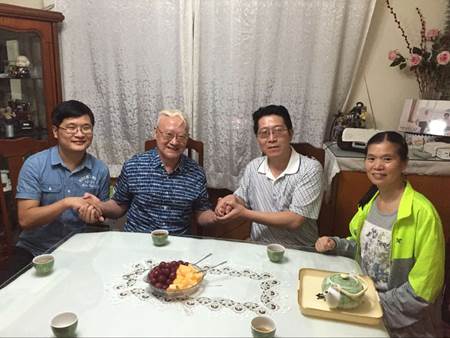黄朝炎、秦少东和甄踪辉看望北京的张洪良、万红梅二位老师