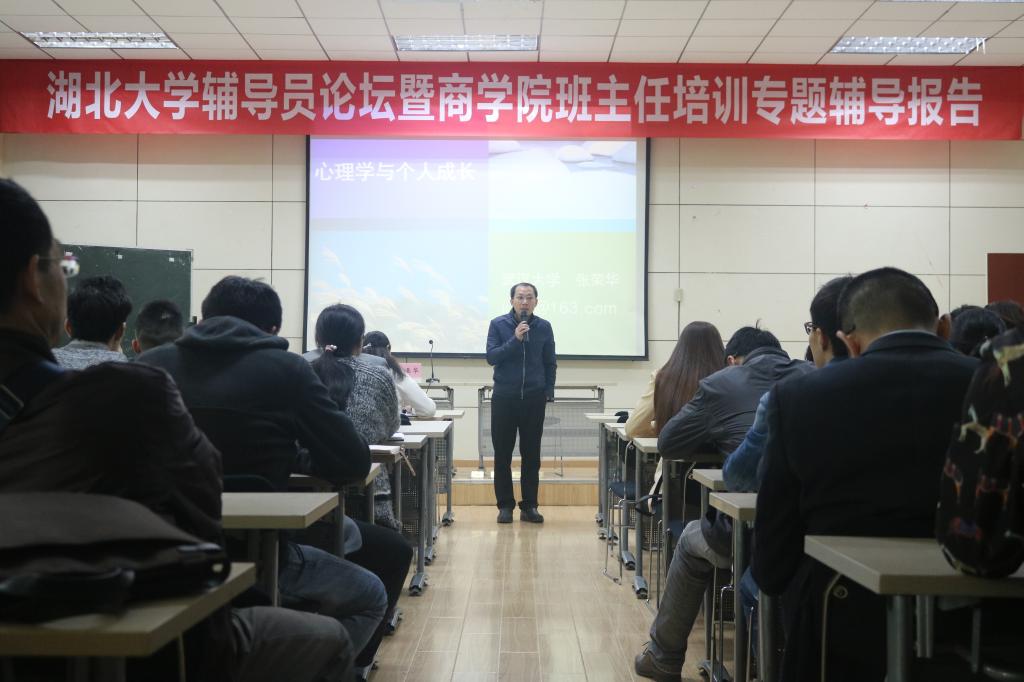 4月5日下午,武汉大学心理学专家张荣华教授在太阳成集团tyc151cc二楼报告厅作了《心理学与个人成长》专题辅导报告。报告会由太阳成集团tyc151cc党委副书记张丽娜主持,学校全体辅导员和太阳成集团tyc151cc班主任教师参加报告会。