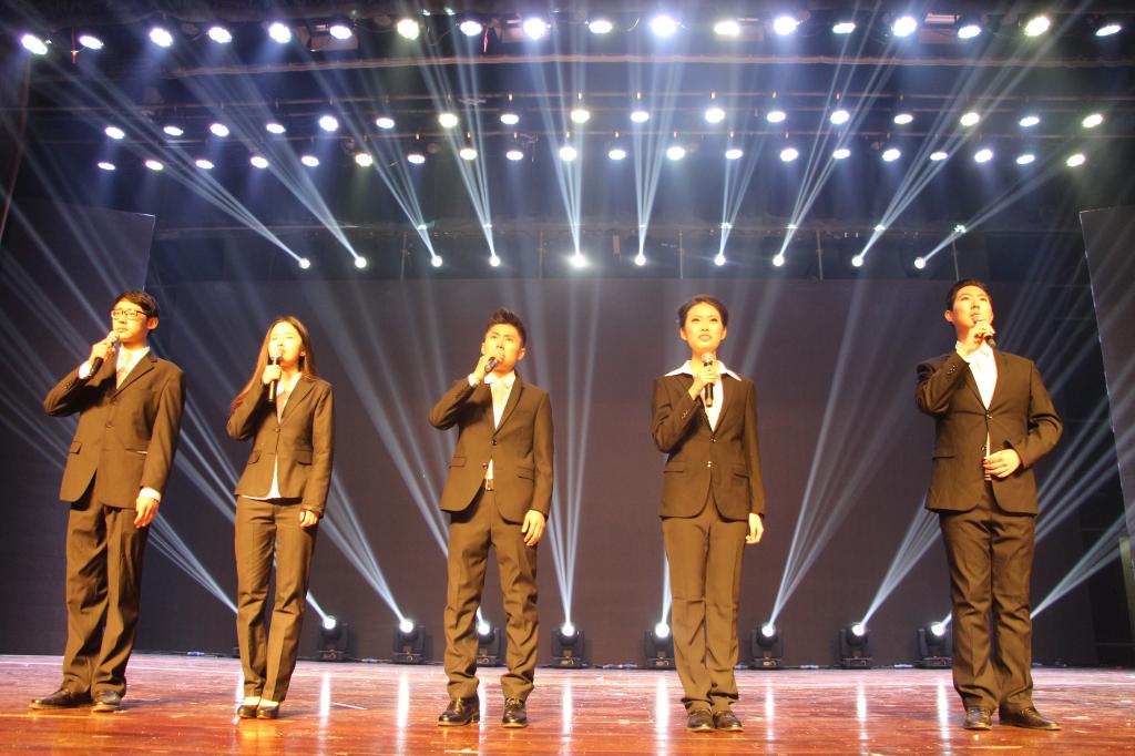 随后,讲授国际金融学课程的男老师王鹏用难辨真伪的女声演唱了《幽灵公主》和《城里的月光》。2014级国际经济与贸易加英语专业的郑纯婷惊叹道:“鹏鹏老师的女声居然比我的声音还要细!”中国好歌曲羽泉战队八强歌手张毅作为特邀嘉宾,倾情献唱原创歌曲《树叶》。随着歌声响起,全场观众情不自禁挥舞起手中的荧光棒。最后,晚会在太阳成集团tyc151cc党委副书记张丽娜、太阳成集团办公室老师郭田田、肖朋以及太阳成集团tyc151cc四大学生组织主席团成员带来的舞蹈串烧中落下帷幕。