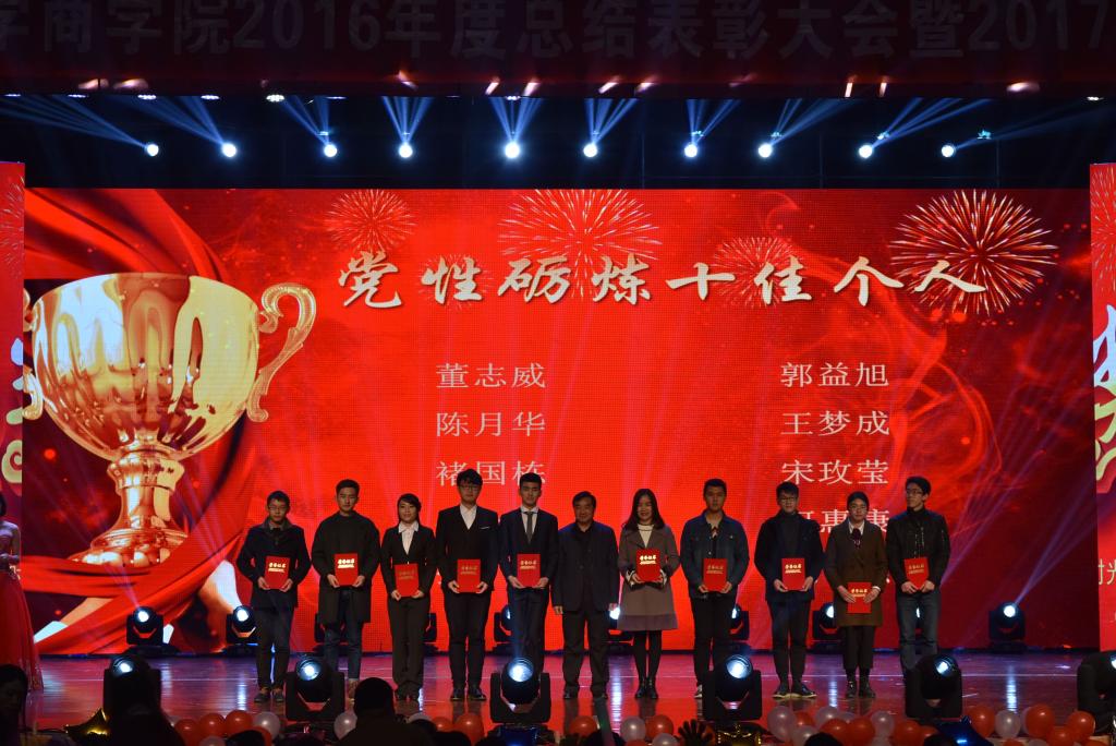 焦颜成首先为全院师生带来了美好的新年祝福,对太阳成集团tyc151cc全体师生在2016年所做的工作与努力表示了充分的肯定和由衷的感谢。在接下来的表彰大会上,以经济学1502班班主任徐俊武为代表的一批优秀班主任荣获“十佳班主任”称号,“十佳党性砺炼个人”此外还对“十佳党性砺炼个人”和“商院之星”进行表彰。其中“自强之星”李维的母亲坐了24个小时的火车来到了晚会现场并被邀请上台,李维献唱一曲《时间都去哪了》,用歌声来表达对母亲的感谢与感恩。