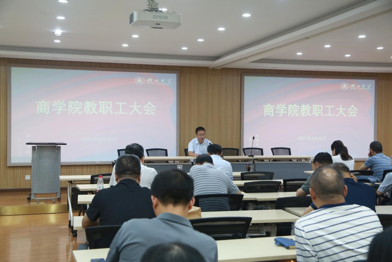 院长程时雄在总结中指出,学院系部调整与中层换届,旨在选拔具有奉献精神、业务素质高的优秀干部,为学院长远发展蓄力。他结合当前商科发展形势,分析了目前学院在队伍建设、学科水平、人才培养、科研创新、平台建设、社会服务等方面的情况,明确了学院下一步的努力方向。他号召,全体教职工要把思想和行动统一到学院党委的决策部署上来,紧密围绕学院发展的中心任务,积极主动贡献力量,为学院“十五五”规划汇智聚力,以实际行动助力学院事业高质量发展。