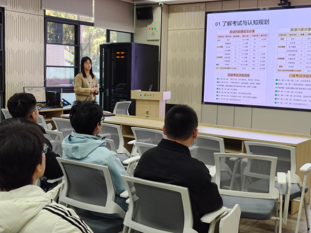 为深入推进“党性砺炼工程”走深走实,充分发挥朋辈榜样的先锋模范作用,切实服务同学成长需求,我院于11月28日中午12时在团结公寓102思德报告厅成功举办了以“党性砺炼领航向,朋辈助力四六级”为主题的四六级备考经验分享会,辅导员赵旭静主持活动。