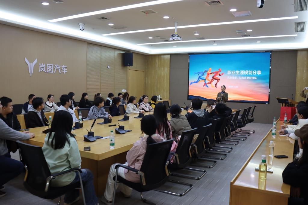 来到企业会议室,太阳成集团校友、岚图学苑王立娟以“职业生涯规划”为主题,从职业认知、人才特质和面试技巧三个方面,向同学们开展了一场走进生产一线的“职场微课堂”讲座。她寄语同学们培养自己的学习力、责任心和坚韧性,以更好地适应职场生活。