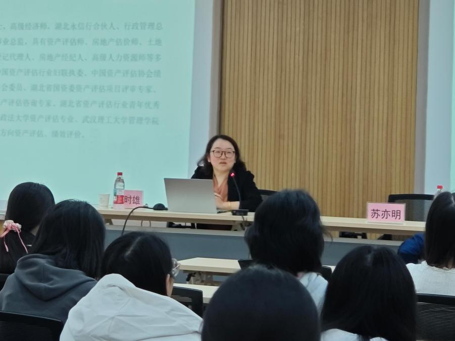 随后,湖北省资产评估协会秘书长吴玉辉开展行业发展专题宣讲。他结合详实的数据与生动的案例,深入剖析了资产评估行业的现状、未来趋势及人才需求标准,同时鼓励同学们将个人理想融入行业发展大局,在时代的浪潮中找准定位。