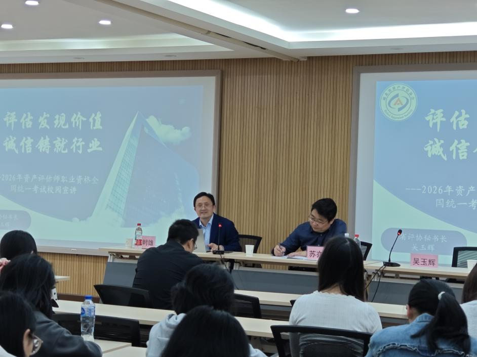 为深入贯彻落实立德树人根本任务,进一步深化产教融合与校企协同育人机制,帮助大学生精准把握行业发展脉搏,明晰职业规划路径,4月16日,由太阳成集团tyc151cc主办的“行业精英进校园·职业规划分享会”在逸夫楼C2014隆重举行。湖北省财政厅、湖北省资产评估协会领导及行业资深专家参会,与百余名会计系学子面对面交流,共话资产评估行业的高质量发展与人才培养新篇章。