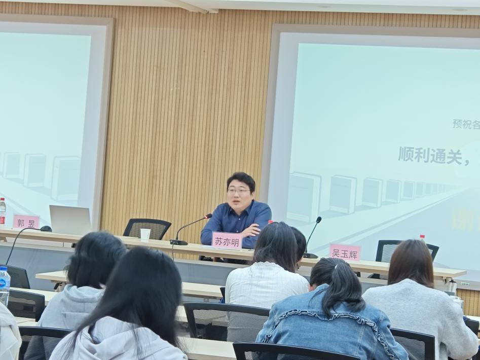 活动最后,湖北省财政厅国有资产资源综合管理处副处长苏亦明讲话,他对本次活动给予高度评价,并对青年学子寄予厚望。苏亦明指出,资产评估行业是维护市场经济秩序的重要专业力量,正处于转型升级的关键期,他希望同学们能立足专业,夯实理论根基,关注行业前沿动态,培养创新思维与实践能力;同时,要在未来的职业生涯中坚守职业操守,以专业素养和责任担当服务地方经济发展,成为推动行业进步的中坚力量。