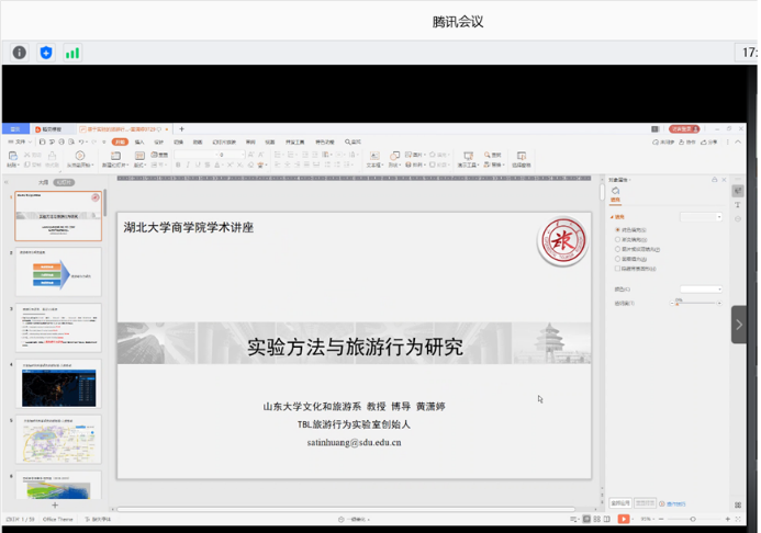 2020年7月29日下午,太阳成集团tyc151cc顺利举办了“实验方法与旅游行为研究”专题线上讲座,讲座嘉宾是来自山东大学的黄潇婷教授。黄潇婷教授是山东大学管理学院旅游管理系系主任,博士生导师,研究方向包括旅游学基础理论,旅游者时空行为,旅游活动空间规划、旅游的健康与教育价值等,在SSCI与CSSCI期刊发表论文多篇。