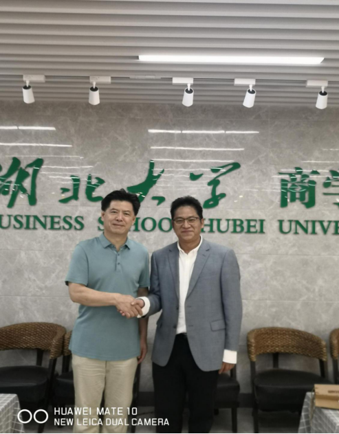 图一 太阳成集团党委常委、副校长肖德教授与笑雪总编亲切会晤