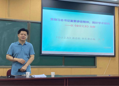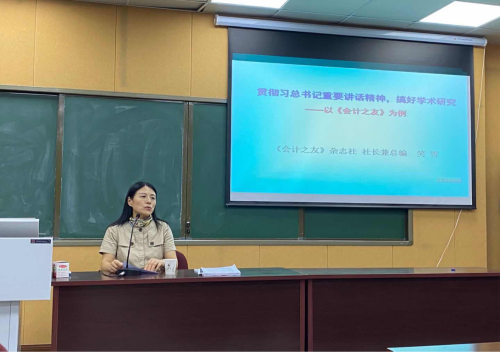 2020919日下午15:00,山西社会科学学报刊社党支部书记、副社长,《会计之友》杂志社社长、总编笑雪应会计系的邀请,给会计系师生带来一场题为《贯彻习近平总书记重要讲话精神,搞好学术研究—以〈会计之友〉为例》的主题讲座