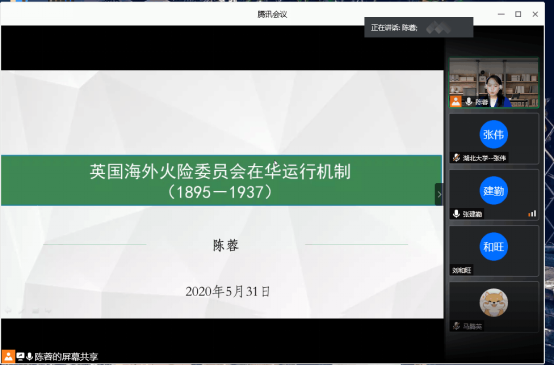 “中国近代保险史折射出整个近代中国经济社会发展的曲折历程,英国海外火险委员会是全面认清中国近代保险的关键性因素……我是最早接触伦敦英国海外火险委员会档案的中国学者之一。” 5月31日上午,陈蓉博士通过腾讯会议,线上带来一场题为《英国海外火险委员会运行机制(1895-1937)》学术报告,为我们揭开了操控中国近代保险市场国际垄断组织——英国海外火险委员会的神秘面纱。商学院经济系主任杨弘主持报告。