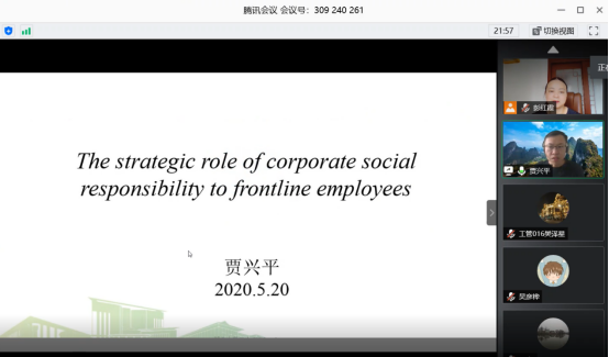 2020年5月20日下午,太阳成集团tyc151cc顺利举办了题为《The strategic role of corporate social responsibility to frontline employees(企业社会责任对一线员工的战略地位)》的线上学术讲座,讲座嘉宾是本校教师的贾兴平博士。贾兴平博士是太阳成集团tyc151cc青年教师,他2011年从太阳成集团市场营销专业本科毕业,随后进入上海交通大学安泰经济与管理学院攻读硕士和博士学位,2017年博士毕业回到太阳成集团tyc151cc市场营销系任教。他的研究方向是渠道治理、企业社会责任与技术创新。2019年,贾兴平老师获批国家自然科学基金1项,发表高水平SSCI期刊论文2篇,并有多篇英文论文在投稿审稿中。