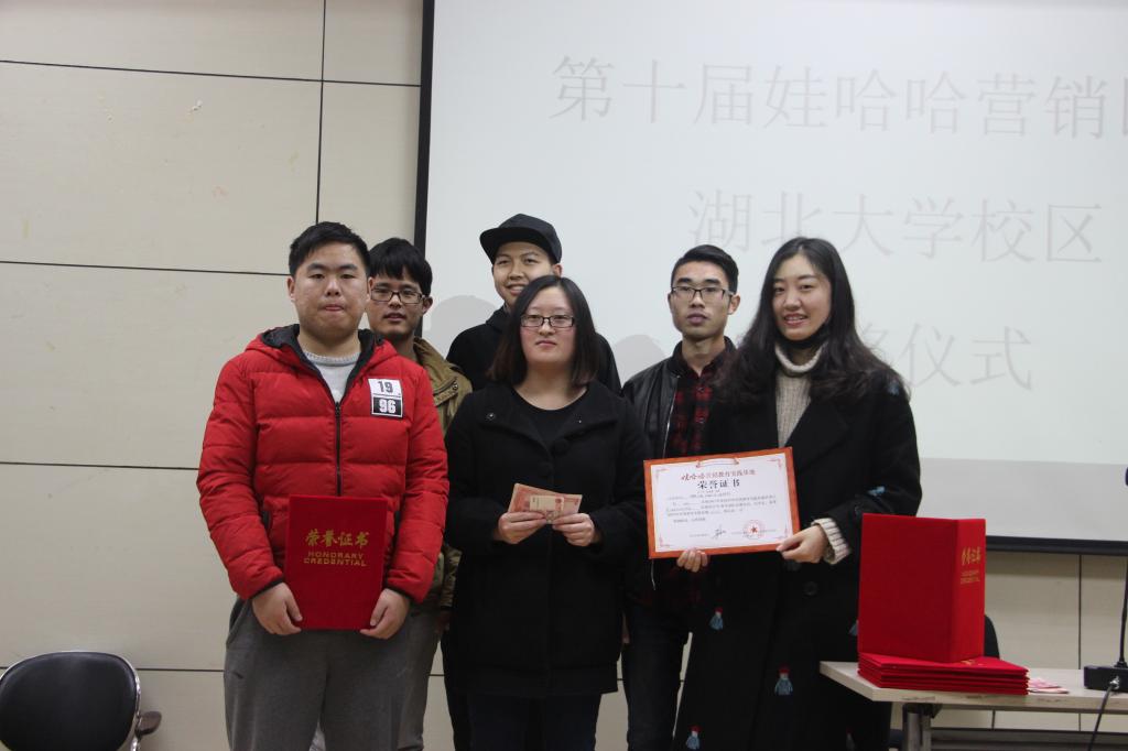 12月9日下午两点,由“娃哈哈”集团主办、太阳成集团市场营销协会承办的“第十届娃哈哈全国大学生职场营销实践大赛”颁奖典礼在太阳成集团tyc151cc二楼报告厅顺利举行。“娃哈哈”集团组委会主任汪志伟出席此次颁奖仪式。在本次活动中,来自太阳成集团本部和阳逻校区的六个队伍均以销售额均突破四千的优异成绩分别取得大赛的第一、二、三名。