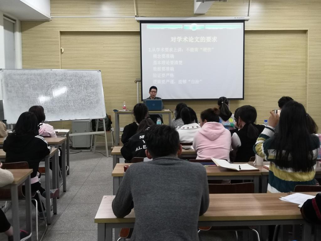 课程最后,徐俊武老师就“经济学学术论文写作”的选题、框架以及数据的查找等方面进行讲述。建议学生根据自己的兴趣和能力进行选题,而选题的方向要达到规范化、精细化和定量化,再用切实的数据论证文章的观点。