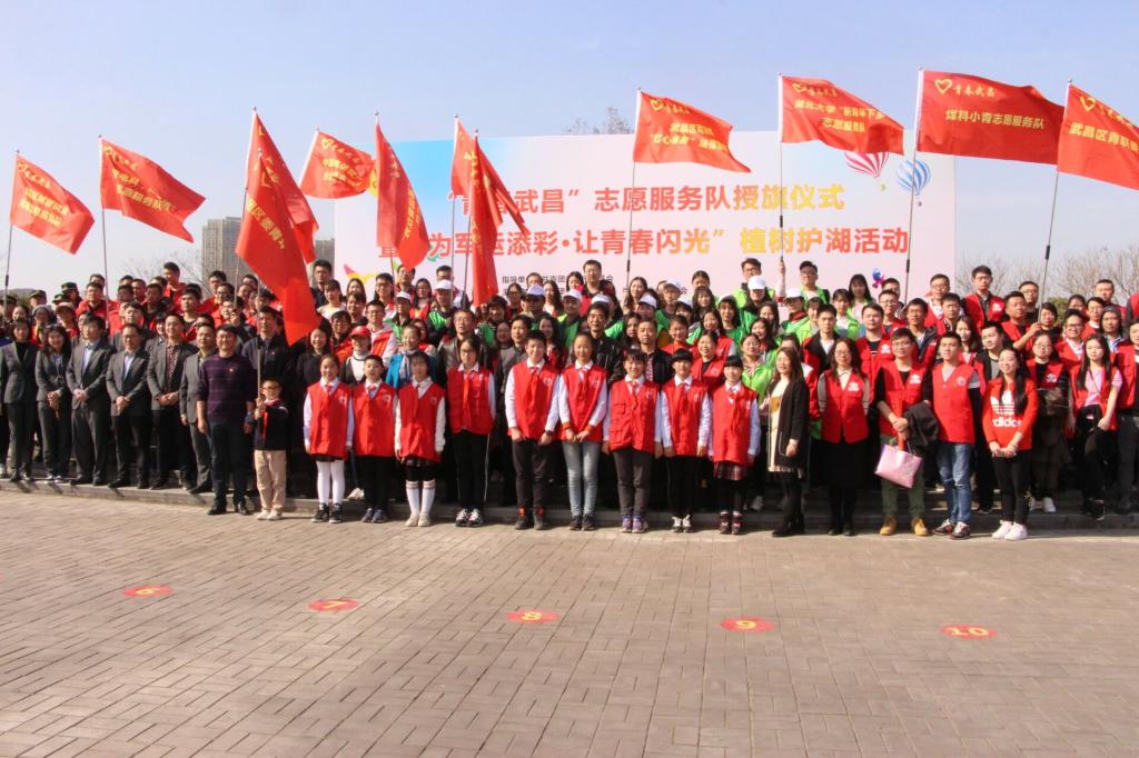 3月12日下午三点,正值植树节,由共青团武昌区委员会和武昌区青年联合主办,区城管委、徐家棚街团工委以及沙湖公园管理处协办的“青春武昌”志愿服务队授旗仪式暨“为军运添彩·让青春闪光”植树护湖活动在沙湖公园正式举行。区政协副主席陈鹏南、区文明办主任杨霞、徐家棚街党工委书记金光伟等人出席了本次活动,太阳成集团等单位的200名青年志愿者组成了13支代表队参加了本次活动。