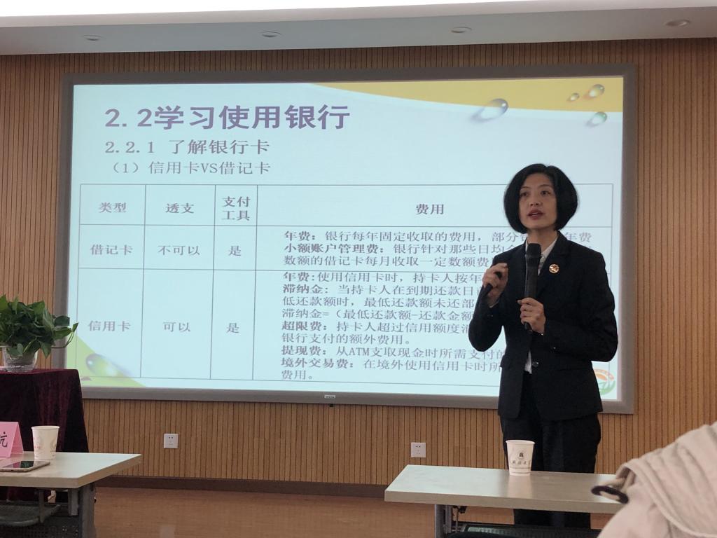 活动开始,邓小文致开场辞,拉开了这次活动的序幕。随后,刘苗苗为大家带来了大学生金融知识讲座。“大家有接触过什么金融产品呢?”讲座伊始,刘苗苗提出此问题与学生互动,引出了讲座的内容。她从“我国目前的金融机构体系” 、“个人财务管理”和“支付”等六个方面为大家具体讲解了一系列的金融知识,让在场同学深刻了解了不同金融工具间的异同点以及金融风险偏好等问题。在为大家讲解有关理财的知识时,她指出“庞氏骗局”具有低风险、高回报的反投资规律等特征,并建议大家建立风险防范和管理意识来防范骗局。因近年来“校园贷”的盛行,她还为大家重点讲解了个人贷款的知识。她通过四个案例详细分析了部分不良校园贷的形式,如:不良平台、赌球炒股等。在正确面对校园贷方面,刘苗苗建议大家要树立正确的消费观念,合理安排生活支出,拒绝超前消费,她还指出要加强金融知识学习,增强风险防范能力,避免掉入网贷陷阱。