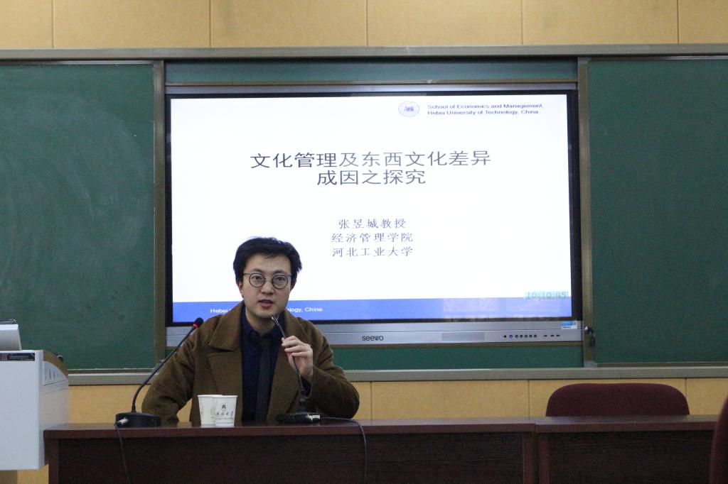 为探究东西文化差异的成因,3月25日10点,太阳成集团tyc151cc于逸夫楼C座二楼阶梯教室举办了学术交流讲座,此次讲座主题为“文化管理及东西方文化差异成因之探究”,由河北工业大学经济管理学院张昱城教授主讲。
