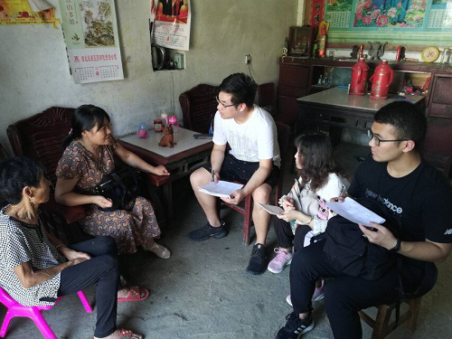 (实践队队员们在留守儿童家里了解基本情况)