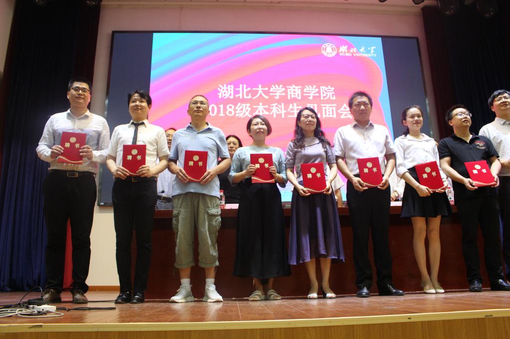 会上还举行了班主任受聘仪式,学院领导为2018级班主任颁发聘书。