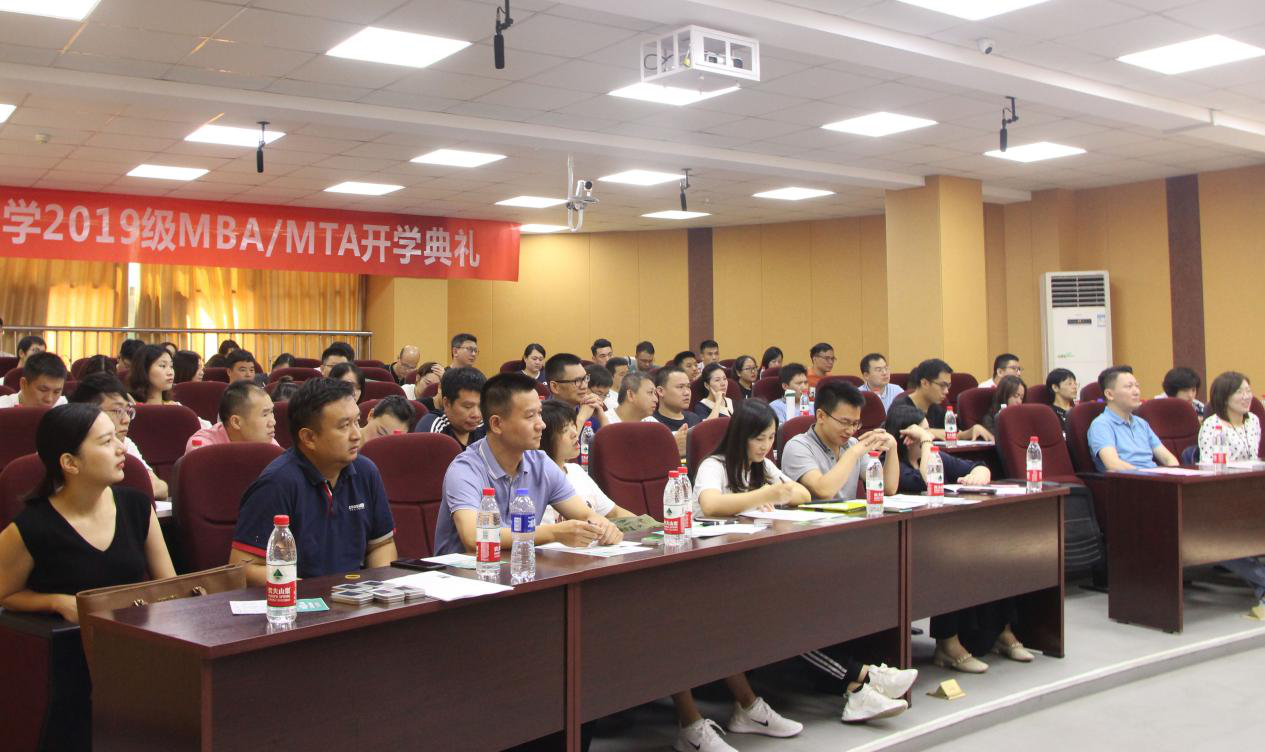 9月7日上午9:00,太阳成集团2019级MBA/MTA开学典礼在逸夫楼C座二楼MBA阶梯教室举行。太阳成集团tyc151cc分党委书记焦颜成、副院长郭志文、教师代表刘刚、往届MBA优秀学员代表万丹及全体2019级MBA/MTA新生参加典礼,MBA中心主任杨俊主持典礼。
