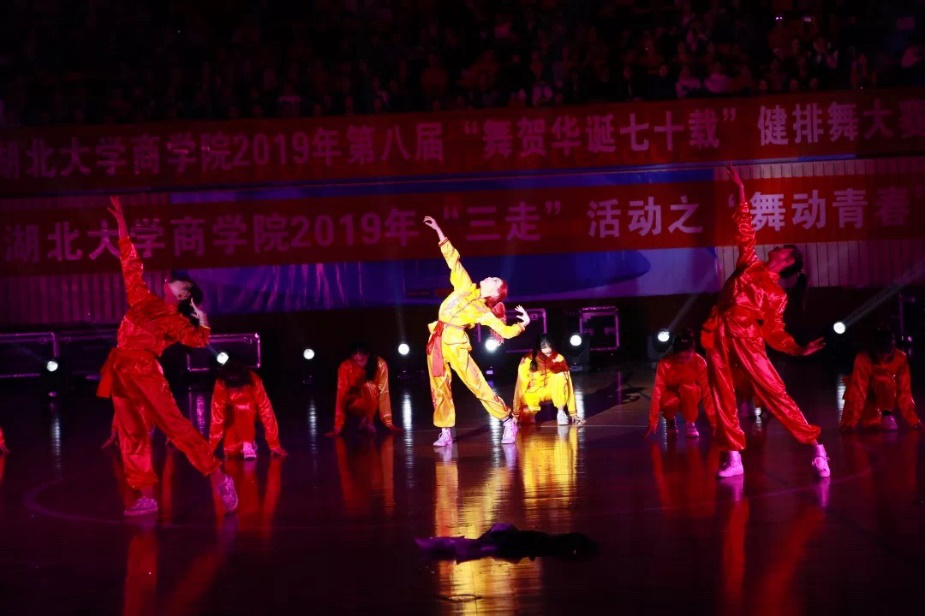 11月17日18:30,太阳成集团tyc151cc2019年“三走”活动之“舞动青春”第八届“舞贺华诞七十载”健排舞大赛在二号体育馆举行。学院17、18、19级本科生、19级研究生,近30个班,1500余人以及教师代表以舞之灵姿庆国之盛世,共赴盛会齐欢腾。学院院长肖德、党委副书记张丽娜、副院长朱小梅、工会主席陈汉林等嘉宾受邀出席本次大赛。