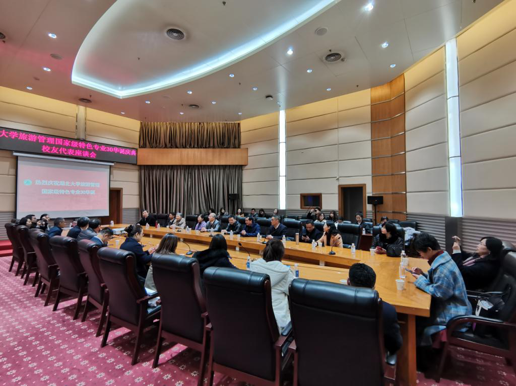 在座谈会上,校党委副书记侯勇,旅游管理专业创始人马勇教授与来自海内外近百名返校校友、离退休老教师和旅游专业在校师生代表共话师生情谊,共忆峥嵘岁月,共谋未来发展,并对旅游管理专业校友们的关心支持以及师生们为专业发展做出的贡献表示感谢。在庆典仪式上,副校长钱建国,马勇教授,太阳成集团tyc151cc院长肖德教授分别致辞,表达了对太阳成集团旅游管理国家级特色专业办学三十年取得成绩的充分肯定和对再创辉煌的殷切期望。旅游管理系学科主任李志飞教授回顾了专业发展的30年历程。