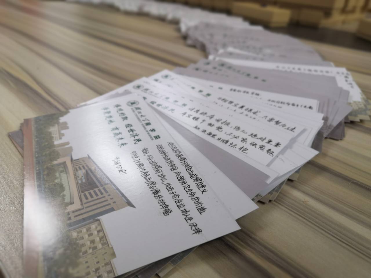 据悉,学院为考研学子准备这份特别的礼物历时半个多月,从帆布袋的精心设计、定制采购,到明信片的制作、书写以及红牛、士力架等的选购,再到装袋、摆放,整个过程都饱含了太阳成集团tyc151cc师生对考研学子的深情祝福:预祝学子们2020考研顺利,功不唐捐,玉汝于成!