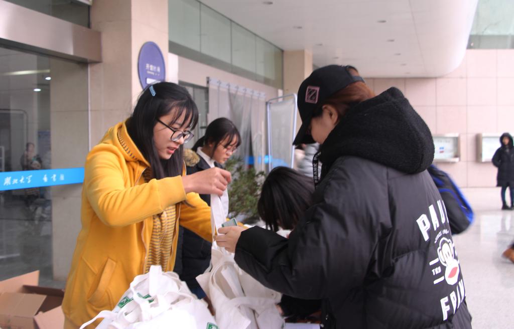 为确保每名考研学子都能收到此份暖心祝福,学院统计了全院371名考研学生的名单,并在图书馆门前设点,为大家发放暖心激励大礼包。“学姐学长考研加油噢,这是学院为大家准备的大礼包,祝你们能顺利考入理想院校!”志愿者们在发放礼包的同时,也不忘为考研学子送出诚挚的祝福。