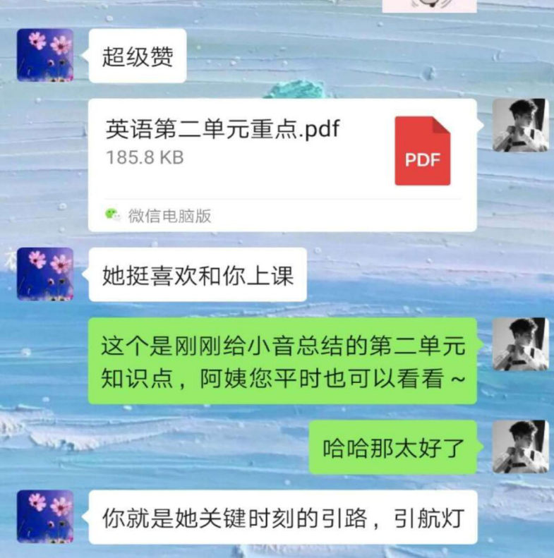 不要“大水漫灌”,做定制化精细辅导。党性砺炼先锋服务队的大学生们通过与“结对”的中小学生的磨合来了解他们的兴趣、薄弱点,然后有针对性的制定教学方案,把握教学重点,采用辩论式的问题讨论、竞赛式的内容学习、导图式的课程总结等形式多样的教学技巧来实现教学效果。东西湖分局吴家山派出所民警王丽的女儿郭静琳在微信群中留言:“之前我学习英语不得法,但我喜欢唱歌,于是琼琼姐姐就用英文歌帮我练听力、学单词,让我感觉学起来很轻松、很有趣”。